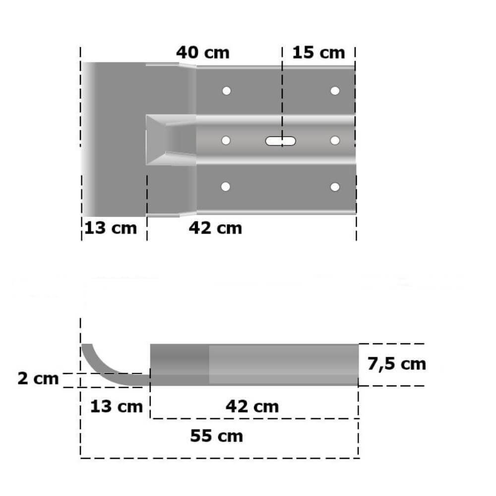 Der Außenwinkel-Komplett-Bausatz für die Wandbefestigung zum Schutz von Säulen und Pfeilern! Der Bausatz aus feuerverzinktem Stahl besteht aus Anschlusskopfstücke und 80 cm Planken mit Profil B, einer 90° Außen-Eckstück, Decklaschen, Plankenschrauben und Verbundankern und entspricht den Güte- und Prüfbestimmungen (RAL-RG 620 und TL-SP 99). Seitenlänge: 127 cm.