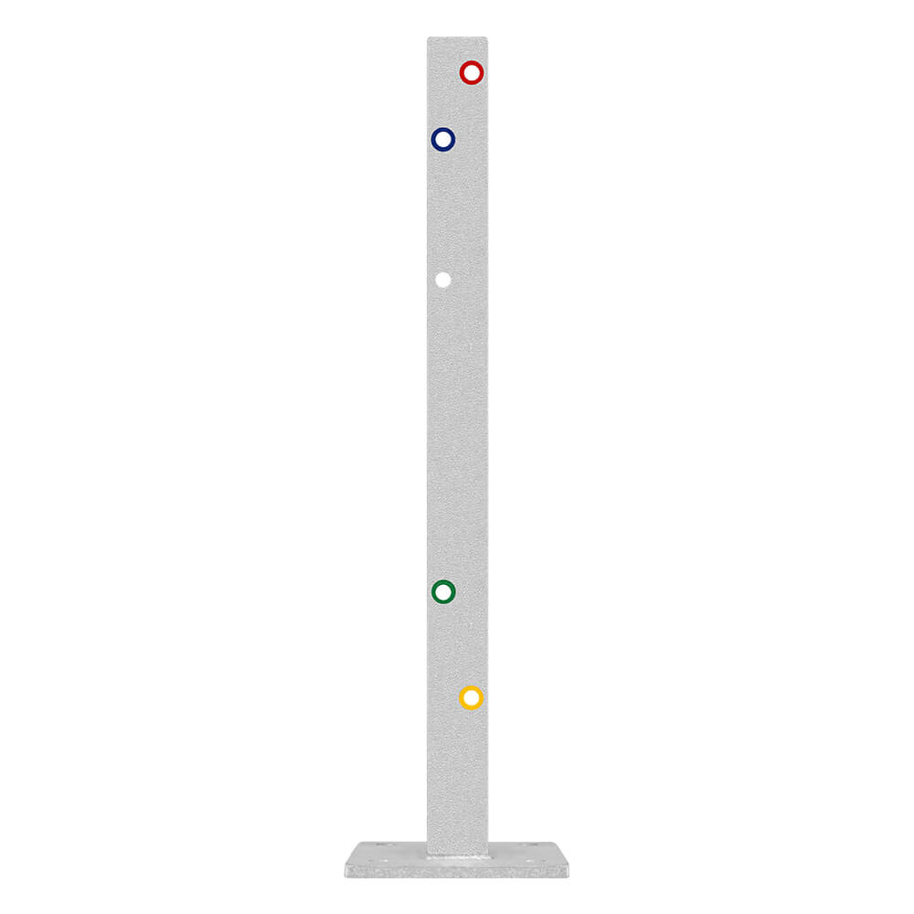 Der Außenwinkel-Komplett-Bausatz M75-2SP aus feuerverzinkten Stahl-Leitplanke mit Profil B beinhaltet alles, was Sie benötigen, um einen 2-holmigen Leitplanken-Eckschutz mit 127 cm Seitenlänge zu bauen. Die Multi-Pfosten sind 75 cm hoch. Sie haben 3 frei wählbare Plankenholm-Höhen zur Wahl. Einfachste Montage dank Farbcodierung. Details unten.
