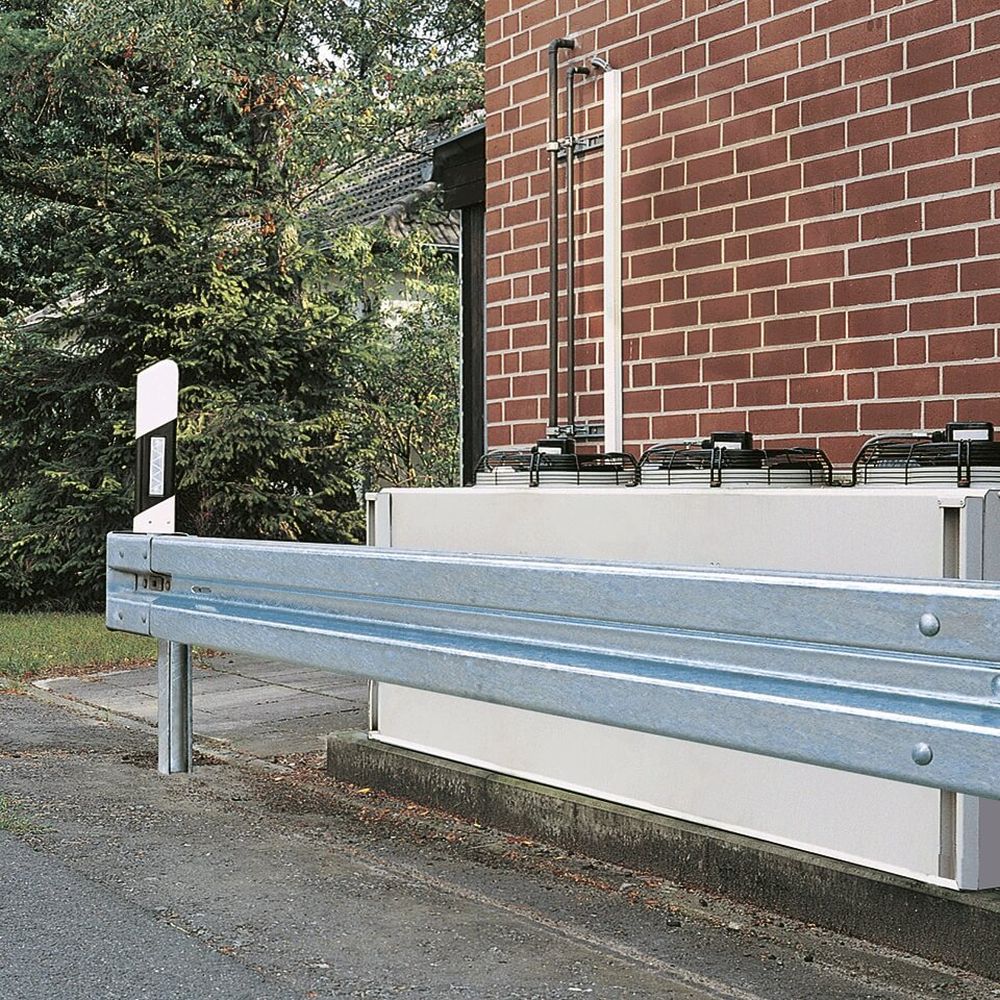 Kategorien: Anprall- und Anfahrschutz mit Schutzplanken, Hallenschutz mit Schutzplanken, Leitplanken Komplett-Bausätze mit B-Profil 1-holmig, Parkplatzschutz mit Schutzplanken
