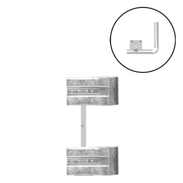 Leitplanken Verlängerungs-Bausatz Außen-Eckstück M100-2SP, aus Stahl, feuerverzinkt, zum Aufschrauben. Beinhaltet alles, was Sie benötigen, um ein 2-holmiges Außenwinkel-System zu bauen. Die Multi-Pfosten sind 100 cm hoch. Sie haben 5 frei wählbare Plankenholm-Höhen zur Wahl. Beliebig erweiterbar. Einfachste Montage dank Farbcodierung. Details unten.