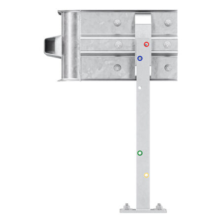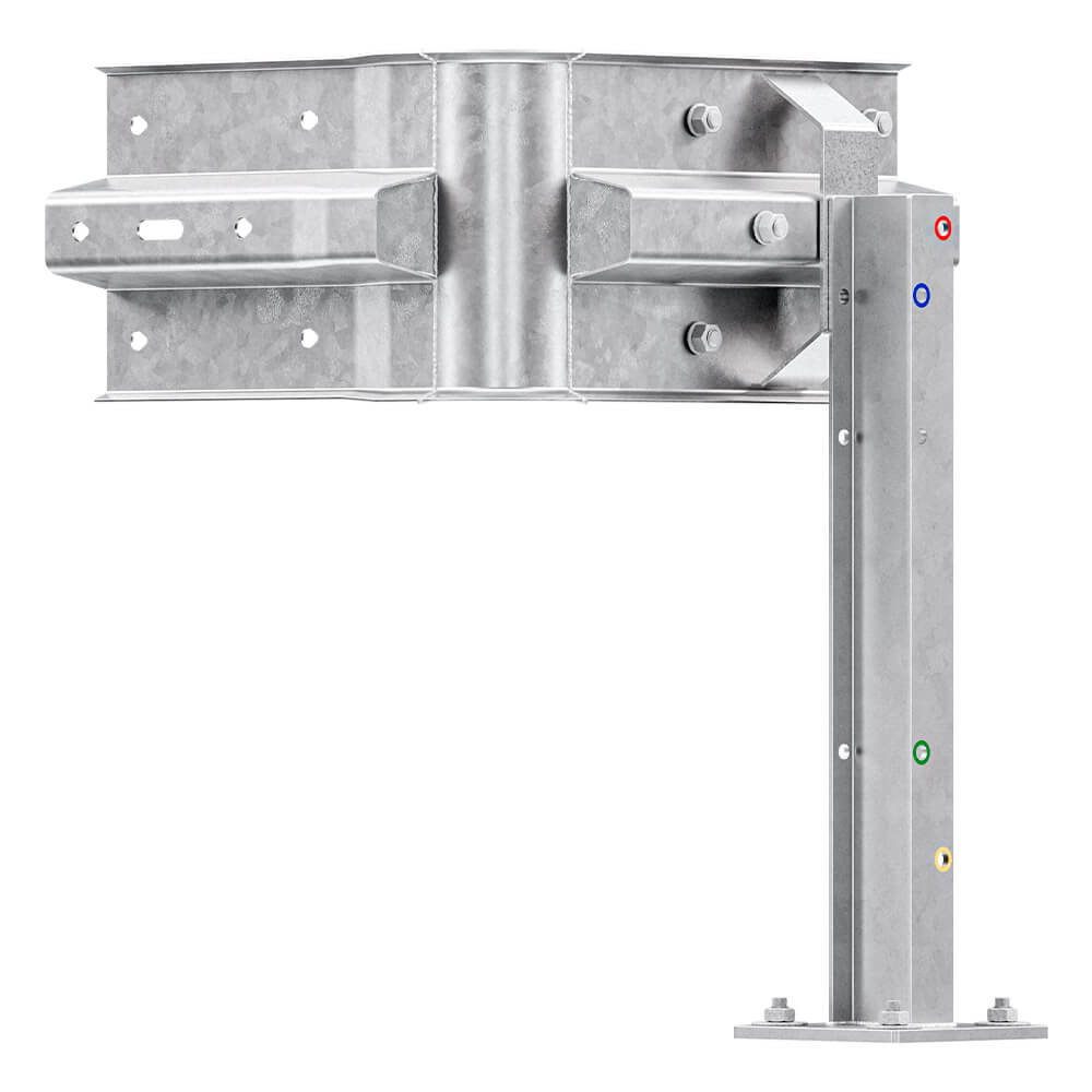 Leitplanken Verlängerungs-Bausatz Innen-Eckstück M75-1SP, aus Stahl, feuerverzinkt, zum Aufschrauben. Beinhaltet alles, was Sie benötigen, um ein 1-holmiges Innen-Eckstück-System zu bauen. Die Multi-Pfosten sind 75 cm hoch. Sie haben 5 frei wählbare Plankenholm-Höhen zur Wahl. Beliebig erweiterbar. Einfachste Montage dank Farbcodierung. Details unten.