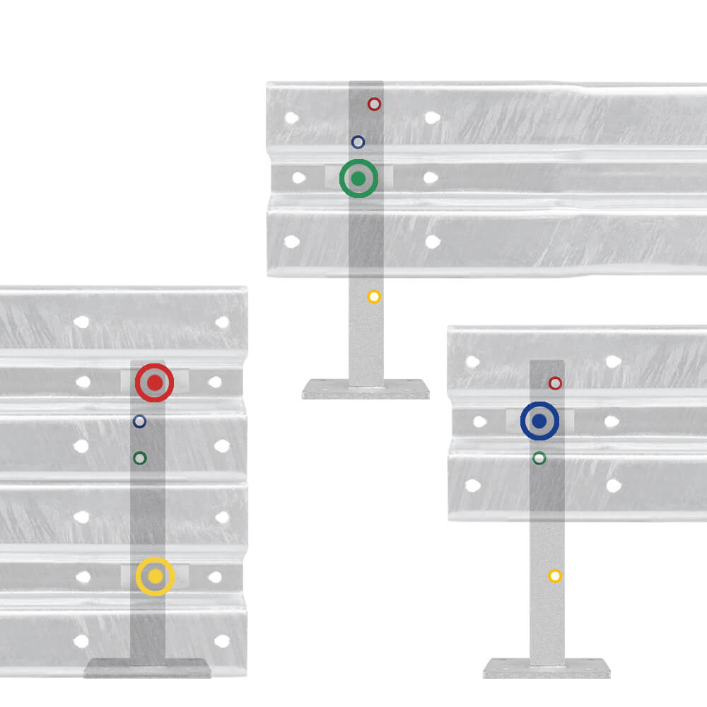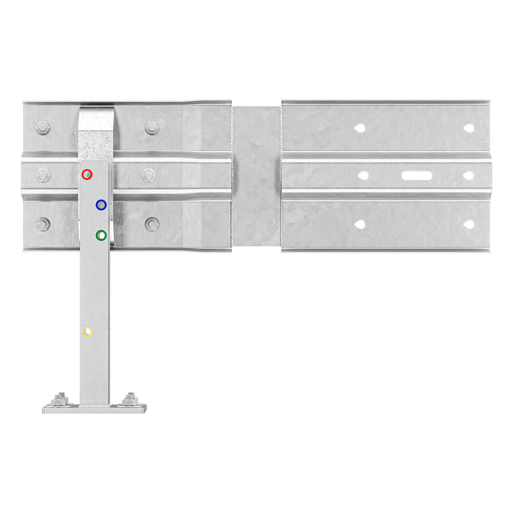 Leitplanken Verlängerungs-Bausatz Knickplanke M50-1SP, aus Stahl, feuerverzinkt, zum Aufschrauben. Beinhaltet alles, was Sie benötigen, um ein 1-holmiges Knickplanken-System zu bauen. Die Multi-Pfosten sind 50 cm hoch. Sie haben 4 frei wählbare Plankenholm-Höhen zur Wahl. Beliebig erweiterbar. Einfachste Montage dank Farbcodierung. Details unten.